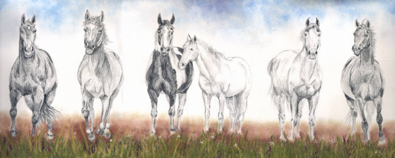 Six horses running forward